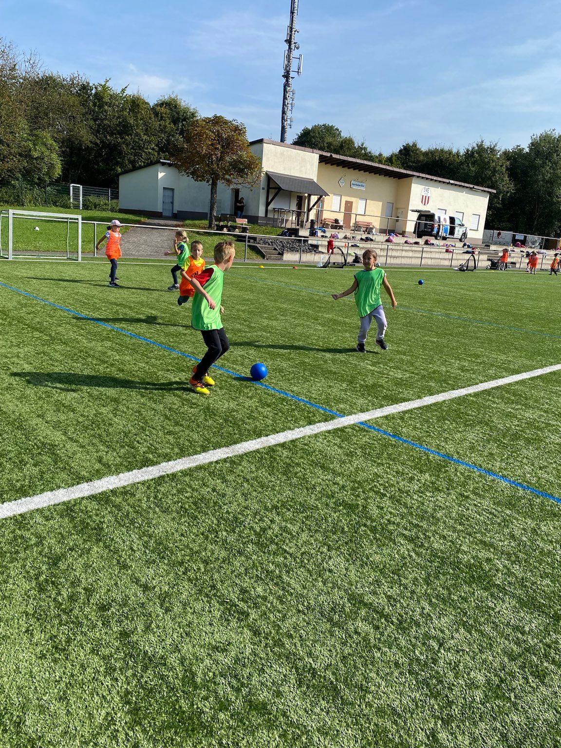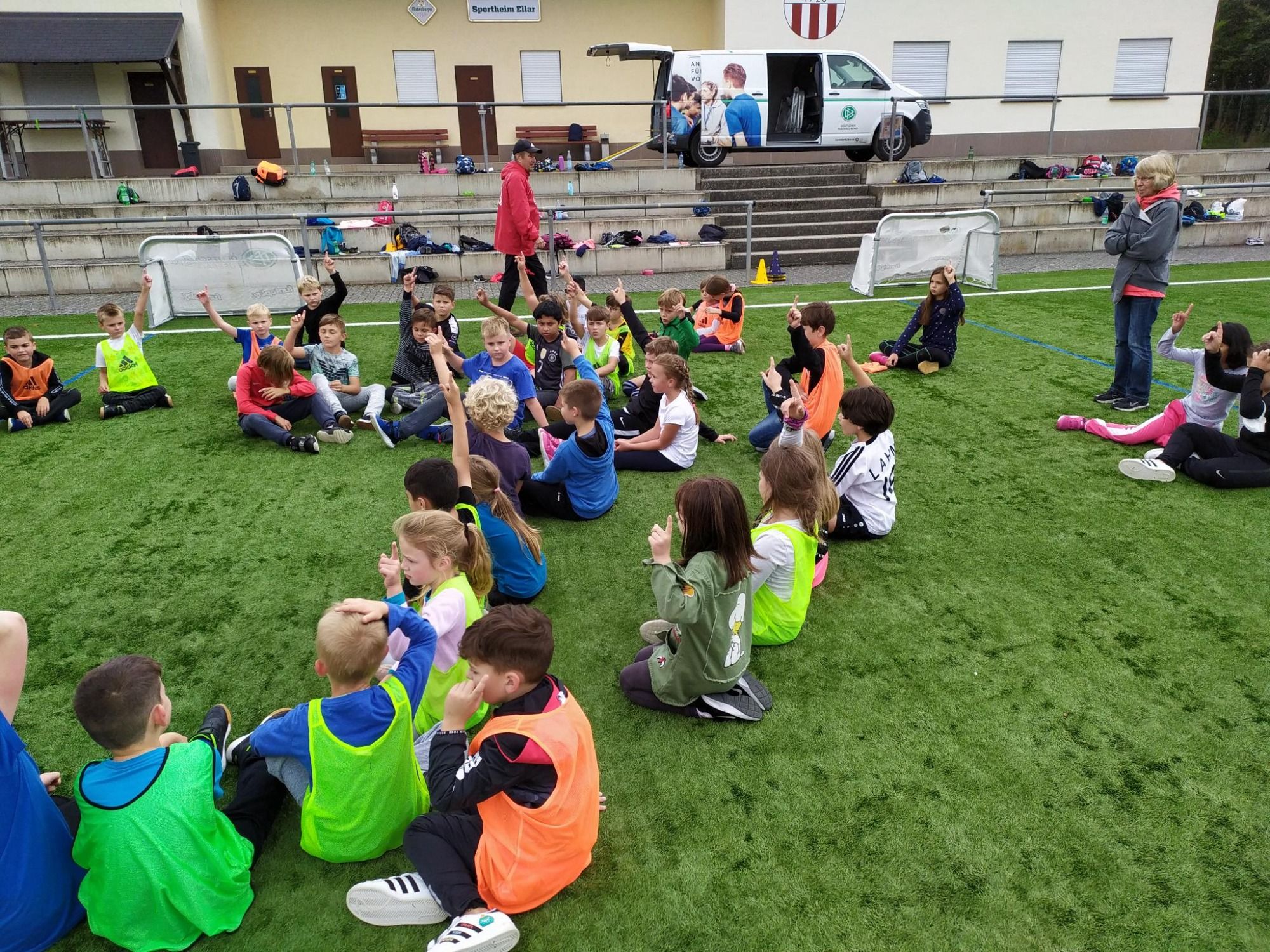 Bei strahlendem Sonnenschein spielten die Kinder aus Hintermeilingen gemeinsam mit den Trainern des DFB-Mobils Fußball auf dem Sportplatz in Ellar.