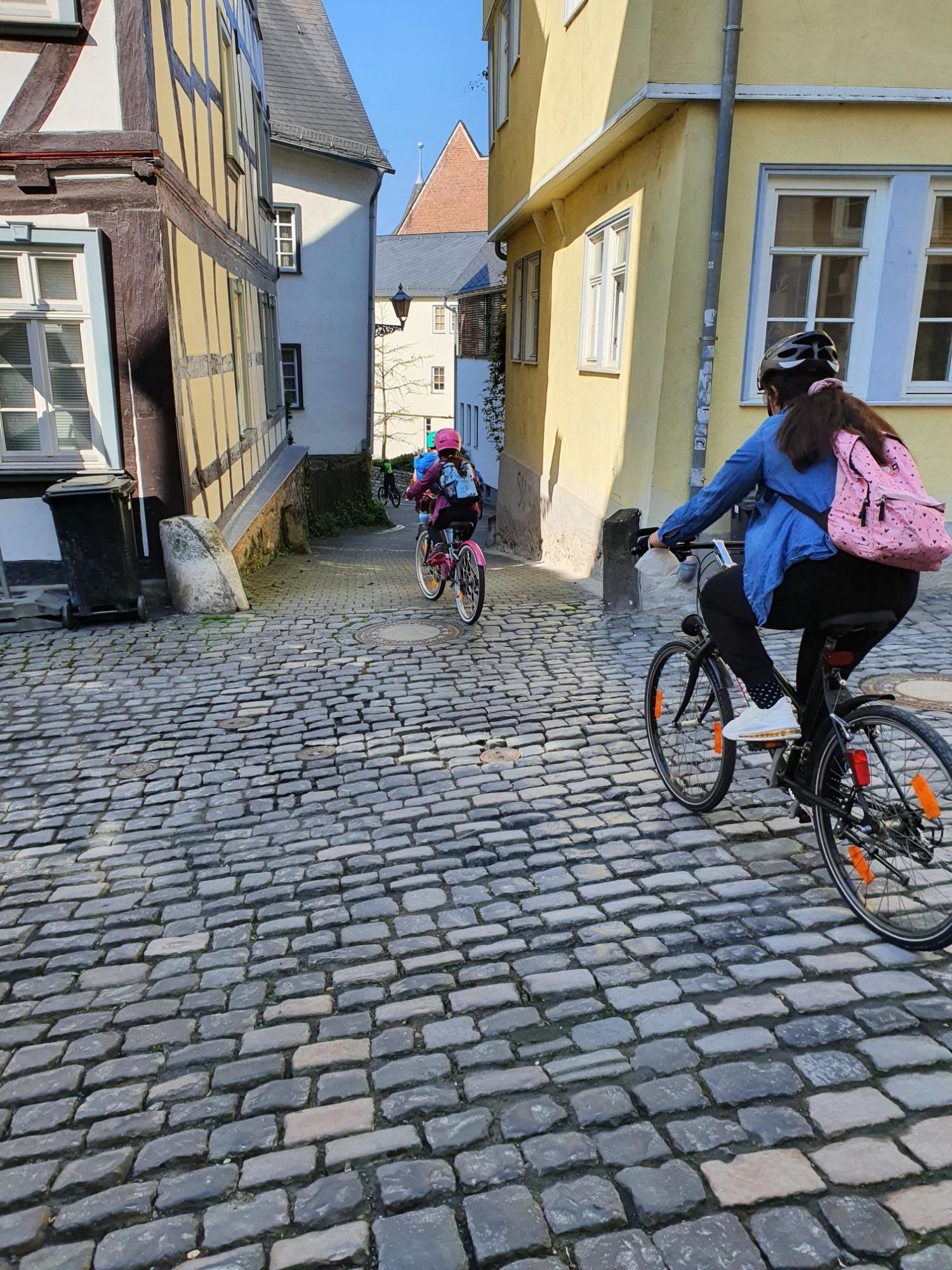 Vom 27.04. bis zum 29.04. haben wir einen Ausflug mit dem Fahrrad gemacht von Löhnberg nach Wetzlar. Wir sind sehr lange gefahren doch das war nicht das Schreckliche. Nach ca. 10 km hatte ein Klassenkamerad von uns einen platten Reifen. Es war schlimm. Der Leo fuhr dann bei Frau Reeh auf dem Gepäckträger mit bis wir eine Werkstatt entdeckten. Wir haben auf Frau Hohler, Frau Kunz und Leo gewartet. Sie hatten Glück, dass sie den Reifen überhaupt wechseln konnten, weil die Werkstatt normal nicht mal offen hatte, doch es kam ein Mann, der dort arbeitet und dann konnten sie den Reifen auswechseln. Nach einer Weile sind wir in der Altstadt von Wetzlar angekommen. Auf dem Weg zur Jugendherberge war es sehr anstrengend den Berg zur Jugendherberge hochzufahren. Als wir dann endlich angekommen sind, haben wir unsere Zimmer eingeteilt bekommen. Ich hatte ein 4er-Zimmer, wo ich mit Louis, Claudius und Rejhan geschlafen habe. Wir haben uns unseren Bettbezug genommen und unsere Betten bezogen. Danach haben wir uns auf den Weg zum Billard gemacht und ich habe mit der Tamina gespielt. Sie hat gewonnen. Als nächstes gab es dann schon Abendessen. Nach dem Essen sind wir bis um 21:00 Uhr Volleyball spielen gegangen. Dann mussten wir uns langsam fürs Bett fertig machen. Am nächsten Tag sind wir in Mathematikum nach Gießen gefahren. Ich fand es cool, dass wir alleine alles erkunden konnten und die Murmelbahn, die jede volle Stunde läuft. Danach haben wir uns dann wieder auf den Weg in die Jugendherberge gemacht. Auf dem Rückweg haben wir an einem Strand Eis gegessen und die Lehrerinnen haben ein alkoholfreies Bier getrunken. Wir sind fast zu spät zum Abendessen gekommen. Um 20:30 Uhr haben wir Disco gemacht was sehr sehr Spaß gemacht hat. Wir haben sehr coole Lieder gehört. Ich fand es sehr cool und ich würde nochmal da hingehen.